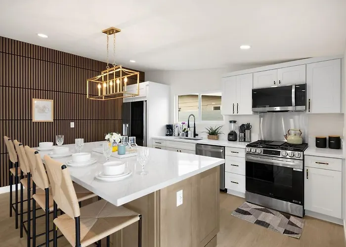 Die Stylish 5 Bedroom Villa With Pool Near Disney - Luxury Family Retreat verfügt über eine Küche mit einem Wasserkocher, einem Kühlschrank und einem Herd für Selbstversorger. Gäste können im Restaurant Little Caboose Taco Shop speisen, das nicht weit entfernt von dieser Unterkunft in Anaheim ist. Die Bushaltestelle Brookhurst-Cerritos ist ebenfalls in etwa 200 Meter Entfernung von dieser 3-Zimmer-Villa.